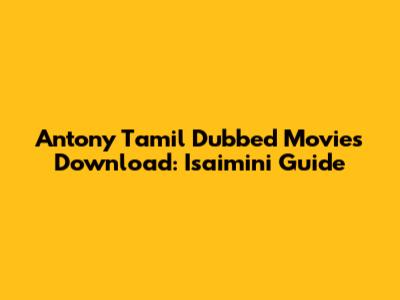 Antony Tamil Dubbed Movies: Isaimini Download Guide