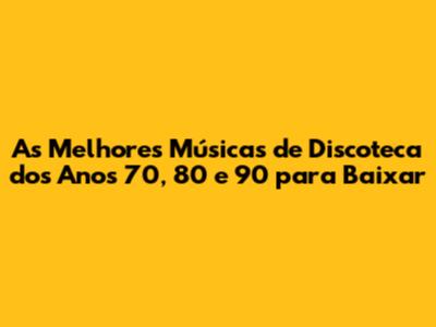 As Melhores Músicas De Discoteca Dos Anos 70, 80 E 90 Para Baixar