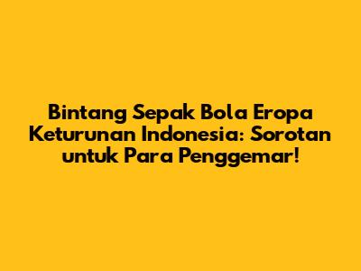 Pemain Keturunan Indonesia yang Mengguncang Eropa: Profil Lengkap!