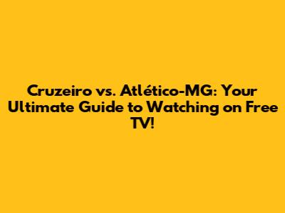 Cruzeiro Vs. Atlético-MG: Watch Live On Free TV!