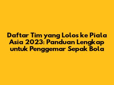 Nah, inilah bagian yang paling ditunggu-tunggu, yaitu daftar negara yang berhasil lolos ke Piala Asia 2023. Setelah melalui proses kualifikasi yang panjang dan menegangkan, akhirnya kita bisa melihat negara-negara mana saja yang akan berpartisipasi di turnamen bergengsi ini. Daftar ini tentu saja akan menjadi informasi penting bagi para penggemar sepak bola untuk mempersiapkan diri dan mendukung tim kesayangan mereka. Jadi, jangan lewatkan informasi berikut ini, ya!