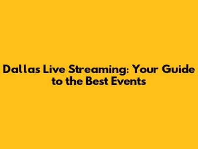 Hey guys! Ever wondered how to catch all the awesome stuff happening in Dallas without actually being there? Well, buckle up because we're diving deep into the world of live streaming in Dallas! Whether it's concerts, conferences, sports, or community events, Dallas is buzzing with activity, and thankfully, much of it is now available to watch from the comfort of your own couch. Let's explore how you can stay connected to the Big D through the magic of live streaming.