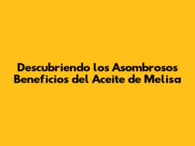 Descubre Los Increíbles Beneficios Del Aceite De Melisa