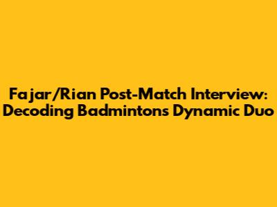 Fajar/Rian Post-Match Interview: Insights & Reactions