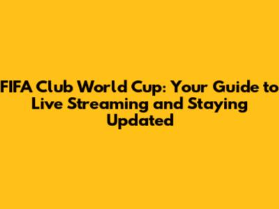 FIFA Club World Cup: Watch Live Streaming & Stay Updated