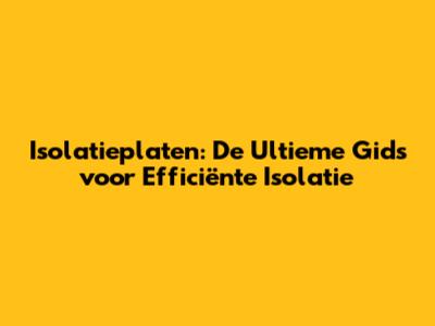 Isolatieplaten: De Ultieme Gids Voor Efficiënte Isolatie
