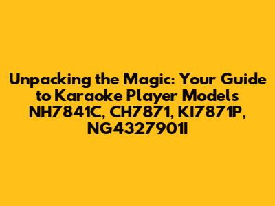 Hey karaoke lovers! Ever found yourself staring at a bunch of model numbers and wondering what makes them tick, especially when you're eyeing up a new karaoke machine? Yeah, it can be a bit of a jungle out there with all those letters and numbers. Today, guys, we're going to demystify some specific karaoke player models that you might have come across: the NH7841C, the CH7871, the KI7871P, and the NG4327901I. We'll break down what these mean and what you can expect from a machine bearing these labels. Whether you're a seasoned home karaoke pro or just dipping your toes into the world of singing your heart out at home, understanding these designations can help you make a more informed decision. So, grab your mic, crank up the volume (metaphorically, for now!), and let's dive deep into the world of these karaoke players. We're going to explore what makes each unique, what features you might find, and how they might fit into your home entertainment setup. Think of this as your ultimate cheat sheet to navigating the sometimes-confusing landscape of karaoke hardware. We'll cover potential uses, target audiences, and maybe even hint at what kind of sound quality or user experience you might anticipate. It's all about making sure you get the best bang for your buck and, more importantly, the most fun singing your favorite tunes. So, stick around as we unravel the secrets behind the NH7841C, CH7871, KI7871P, and NG4327901I – your next karaoke adventure starts here!