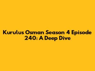 Hey everyone! Let's dive deep into Kurulus Osman Season 4 Episode 240. This episode was packed with action, drama, and some seriously intense moments. We're going to break down everything that happened, from the key plot points to the character developments, and even discuss some of the potential implications for the future of Osman Bey's burgeoning empire. So grab your popcorn (or your favorite Turkish tea!), and let's get started!