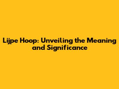 Lijpe Hoop: Unveiling The Meaning And Significance
