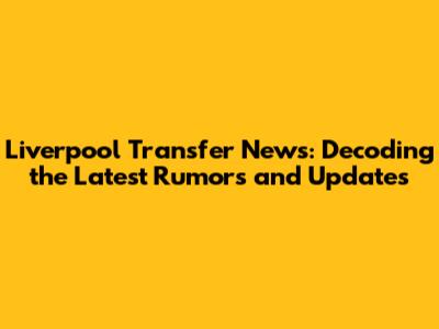 Liverpool Transfer News: Latest Updates & Rumors