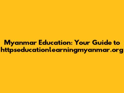 Myanmar Education: Your Guide To Httpseducationlearningmyanmar.org