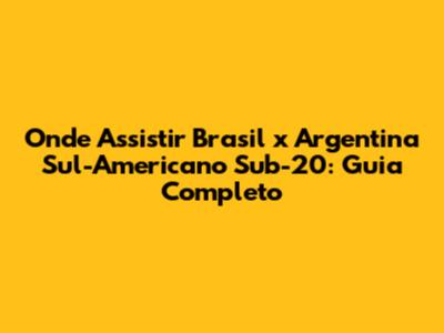 Onde Assistir Brasil X Argentina Sub-20: Guia Completo
