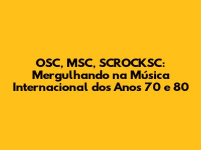 A música internacional dos anos 70 e 80 foi um período de grande criatividade e inovação. OSC, MSC, SCROCKSC e muitos outros artistas contribuíram para a formação de um legado musical que continua a encantar e inspirar pessoas de todas as idades. A diversidade de estilos, a energia contagiante e a qualidade das músicas tornam essa época inesquecível. Que a gente possa celebrar sempre essa música que nos une e nos faz vibrar!