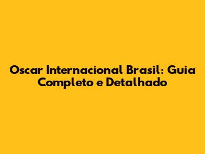 Oscar Internacional Brasil: Guia Completo E Detalhado