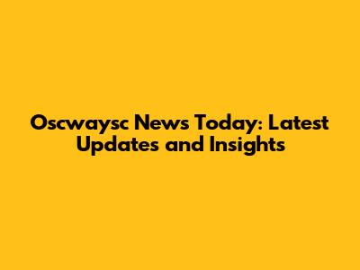 Oscwaysc News Today: Latest Updates And Insights