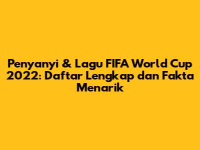 FIFA World Cup 2022 menjadi sorotan dunia, bukan hanya karena pertandingan sepak bolanya yang mendebarkan, tetapi juga karena musik yang mengiringinya. Nah, kali ini kita akan membahas tuntas tentang para penyanyi dan lagu yang menjadi soundtrack resmi dan pengiring kemeriahan Piala Dunia 2022 di Qatar. Yuk, simak daftar lengkapnya, lengkap dengan fakta-fakta menarik yang mungkin belum kamu ketahui, guys!