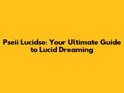 Pseii Lucidse: Your Guide To Lucid Dreaming