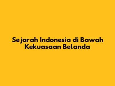 Sejarah Indonesia Di Bawah Kekuasaan Belanda