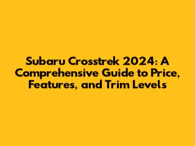 Now, let’s delve into the various trim levels of the Subaru Crosstrek 2024 and their respective price points. Subaru typically offers a range of trims to cater to different budgets and preferences. Each trim level comes with a unique set of features and specifications, which is reflected in its price. Understanding these differences can help you make an informed decision and choose the Crosstrek that best suits your needs. The base trim is often the entry-level offering, designed to provide a solid foundation of features at an accessible price. It usually includes essential features such as a standard infotainment system, basic safety features, and a comfortable interior. As you move up the trim levels, you'll find an increasing number of features and enhancements. The mid-range trims often include upgrades like improved audio systems, advanced safety features, and enhanced comfort and convenience options. Then, you've got the premium trims, which are the top-of-the-line offerings. These trims come fully loaded with the most advanced features, luxurious materials, and cutting-edge technology. They represent the pinnacle of the Crosstrek experience but come with a higher price tag.