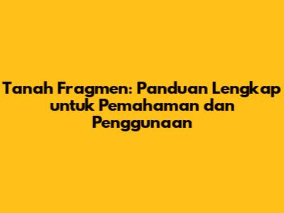 Tanah Fragmen: Panduan Lengkap Untuk Pemahaman Dan Penggunaan