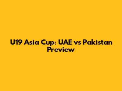 U19 Asia Cup: UAE Vs Pakistan Preview