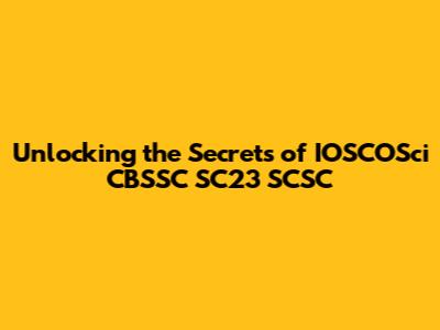 Unlocking The Secrets Of IOSCOSci CBSSC SC23 SCSC