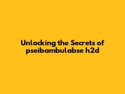 Unlocking The Secrets Of Pseibambulabse H2d