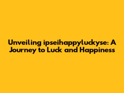 Unveiling Ipseihappyluckyse: A Journey To Luck And Happiness