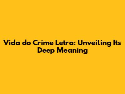 Vida Do Crime Letra: Unveiling Its Deep Meaning
