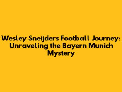 Wesley Sneijder's Career: Did He Ever Play For Bayern?