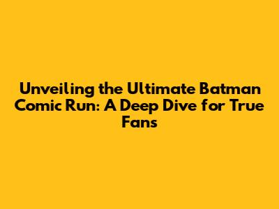 Hey there, Bat-fans! Ever find yourself staring at a towering wall of Batman comics, wondering which ones truly define the Caped Crusader? You're not alone, guys. The Dark Knight has a history longer than a Gotham City blackout, and picking the best Batman comic run can feel like trying to solve the Riddler's most twisted puzzle. But fear not, because we're about to embark on an epic journey through Gotham's grimiest, most glorious comic book eras to uncover the runs that have left an indelible mark on Batman's legacy. We're talking about stories that have shaped the character, introduced iconic villains, and delivered some of the most emotionally resonant tales ever told. So, grab your utility belt, because we're diving deep into the heart of what makes a Batman comic run truly legendary. We'll explore the narratives, the art, and the sheer impact these stories have had, not just on the comics themselves, but on every Batman movie, game, and adaptation that followed. It’s a big topic, I know, but stick with me, and by the end, you'll have a much clearer picture of which Batman comic runs are absolute must-reads for any serious fan. We're not just looking for good stories; we're looking for the ones that define Batman, the ones that push the boundaries, and the ones that keep us coming back for more, issue after issue, year after year. Get ready to have your Bat-caves illuminated!