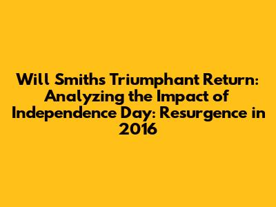 Hey everyone! Let's dive into something pretty cool: Will Smith's triumphant return to the Independence Day universe with Independence Day: Resurgence in 2016. The first film was a mega-hit, a true classic of the 90s, and folks were hyped to see what the sequel would bring. We're going to explore what made this movie so anticipated, how it fared at the box office, and what kind of impact it had on Will Smith's career at that time. Plus, we'll see how Independence Day: Resurgence stacks up against the original and how it used cool special effects.